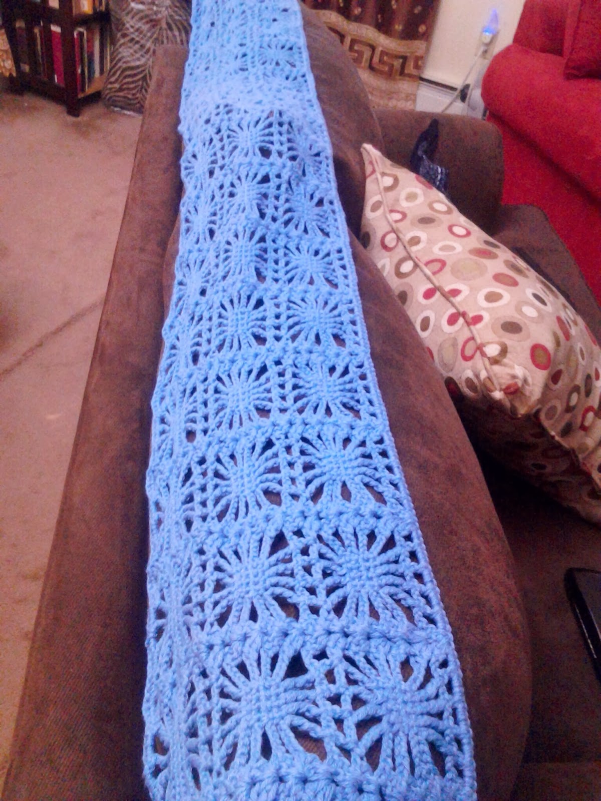 This week has been a fairly decent one where my creativity is concerned. Eight years ago I started crocheting a shawl but I never finished it. I moved twice during that time period. The shawl moved from bag to bag; being stuffed into whatever space was available at the time. Fast forward to this week...what did I spy in my closet? The shawl! I sorted through my printed crochet patterns and what do you know, I still had the copy I printed out eight years ago. I didn't have enough of the cotton yarn to make it to the pattern's finished measurements. It didn't matter because truth is even if I had enough material I would have found a reason to wait another eight years to finish it. Instead I did a border of single crochet around what I had done so far.